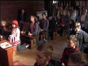 różaniec prowadzą wraz z kapłanem dzieci. Są to młodzi rycerze z dziecięcego
