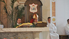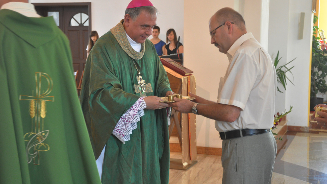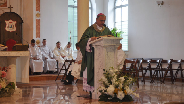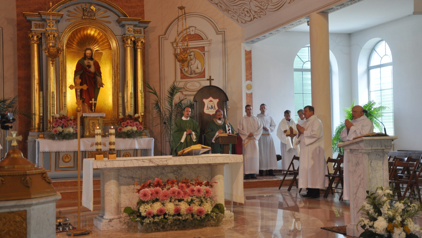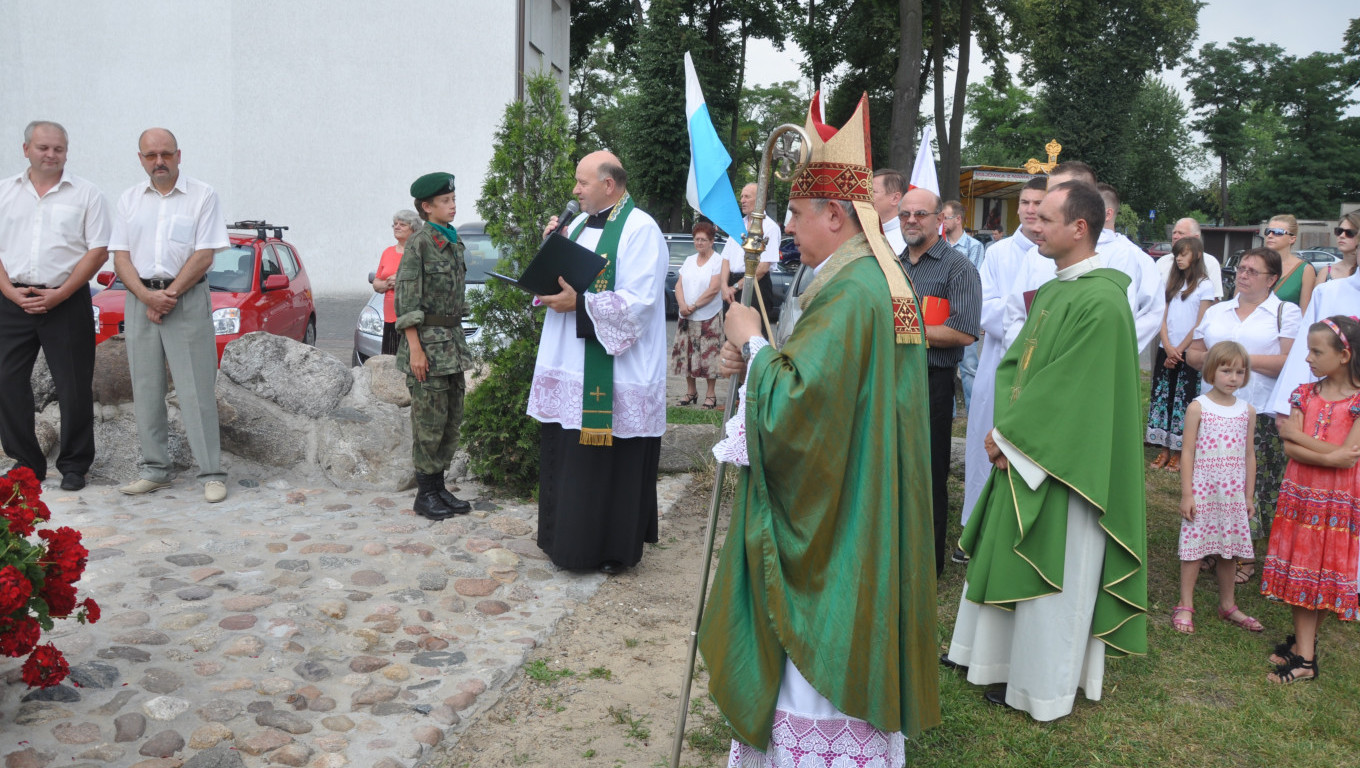 W niedzielę 28 lipca 2013 roku Mszę Świętą o godzinie 1030 odprawił pochodzący z naszej parafii ks. bp Ireneusz Pękalski. Nasz proboszcz ks. Ryszard Stanek powitał dostojnego gościa i podziękował za przybycie. Homilię Jego Eminencja rozpoczął cytatem Cycerona - słynnego mówcy rzymskiego Historia jest nauczycielką życia. Mówił, że w historię świata wpleciona jest szczególna historia - historia zbawienia. Bohaterów wspomnianej historii i wydarzenia z nią związane przypominamy sobie w czasie każdej Mszy Świętej. Czego można nauczyć się i jak zastosować w swoim życiu wydarzenia z historii zbawienia podał na przykładzie Abrahama - człowieka wielkiej wiary i zawierzenia Panu. Abraham błaga Boga o miłosierdzie dla Sodomy i Gomory jeśli znajdzie w niej choć 10 sprawiedliwych - niestety Bóg nie znajduje nawet tak niewielu. Biskup na tym przykładzie przypomina, że nie można żyć czyniąc zło i myśląc, że uniknie się kary. W końcu nasz Pan upomni się o swoje więc nie należy być beztroskim tylko iść do sanktuarium Miłosierdzia jakim jest konfesjonał. Ucząc się na błędach mieszkańców Sodomy i Gomory nie należy się z tym ociągać bo można nie zdążyć się nawrócić. W Ewangelii z kolei - kontynuował - znajduje się przykład nie tylko cudów, które czyni Chrystus, ale przykład jak należy się modlić, czyli rozmawiać z Bogiem. Jezus zawsze znajdując czas modlitwę umacnia się, aby móc wypełnić wolę Ojca. Jakże to odmienne od czynów współczesnego człowieka, który chciałby poprzez różne wymówki unikać modlitwy, Mszy Świętej. Wielu ludzi powinno mieć świadomość, że unikanie kontaktu z Bogiem poprzez modlitwę i podczas Mszy Świętej prowadzi do utraty wiary i życia jakby Pana Boga nie było. Wiele osób postępując tak doprowadza do tego, że życie im się bardzo pogmatwało i nie zdążyli tego już naprawić. Powstające Miejsce Pamięci Narodowej i ludzie upamiętnieni na zamieszczonych tam tablicach są przykładem, że nie musimy się wstydzić naszej historii. Historia Polski dowodzi do czego prowadzi myślenie tylko o sobie, o swoich potrzebach - egoizm naszych przodków doprowadził do rozbiorów. Wanda Malczewska i objawienia od Matki Bożej, których doświadczyła pod koniec 19 wieku są ostrzeżeniem dla Polaków. Maryja ostrzega, że może się w Polsce wiele zmienić na gorsze i Polska może przestać być katolicka jeśli młodzież będzie wychowywana bez Boga.