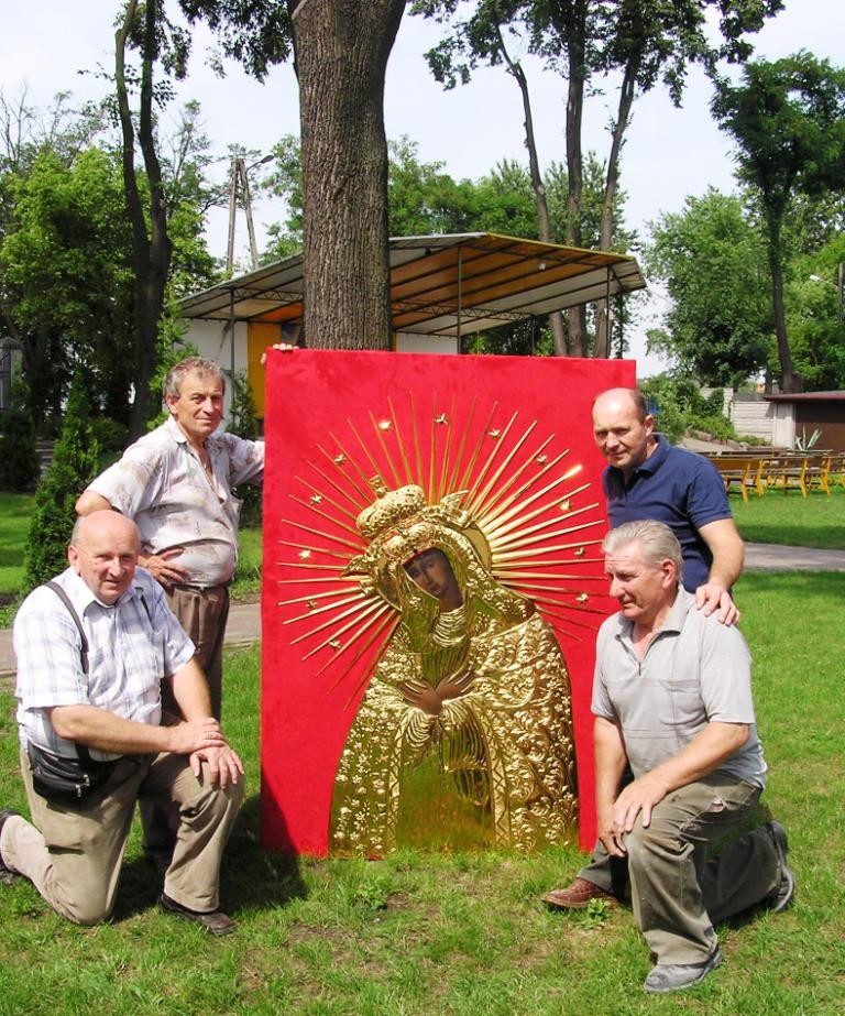 Mężczyźni postanowili jako patronkę koła przyjąć Ostrobramską Matkę Miłosierdzia, by na wzór rycerzy i żołnierzy noszących na piersiach ostrobramski ryngraf, podjąć przy pomocy różańcowego oręża walkę z zakusami księcia ciemności. Pod opiekę koła został przekazany przez ks. Proboszcza wspomniany wyżej ostrobramski ryngraf przywieziony wraz z obrazem z Wilna. Staraniem koła ryngraf został poddany profesjonalnej konserwacji w Toruniu. Zniszczone drewniane podłoże zostało bezinteresownie pokryte tkaniną przez właściciela zakładu tapicerskiego z terenu naszej parafii. Odnowiony ryngraf na nowo nabrał blasku i rozpoczął nowe życie. Po ponownym poświęceniu przez, wychowanego w promieniach bijących z ostrobramskiego wizerunku ks. bp Pękalskiego, decyzją mężczyzn, ryngraf Ostrobramskiej Matki Miłosierdzia peregrynuje w rodzinach członków koła, pozostając w każdej rodzinie przez miesiąc.Mężczyźni zawsze z dumą towarzyszą swej patronce i chętnie prezentują swój skarb przy różnych okazjach. Stałą praktyką koła stały się comiesięczne spotkania w I niedzielę miesiąca, kiedy w intencji mężczyzn z koła odprawiana jest Msza św., po której panowie spotykają się w przyparafialnych salkach by pogłębiać swą wiedzę religijną i wspólnie się modlić. Raz w roku panowie wraz z małżonkami spotykają się ze swoimi duszpasterzami na wspólnym opłatku. Ryngraf noszony jest uroczyście w procesjach wokół kościoła i w procesji Bożego Ciała. Jak przystało na prawdziwych mężczyzn, panowie postanowili zadbać też o precjoza swojej Wybranki. Zadbali, by vota złożone swojej Królowej przez wdzięcznych poddanych lśniły blaskiem i prezentowały się jak najlepiej.